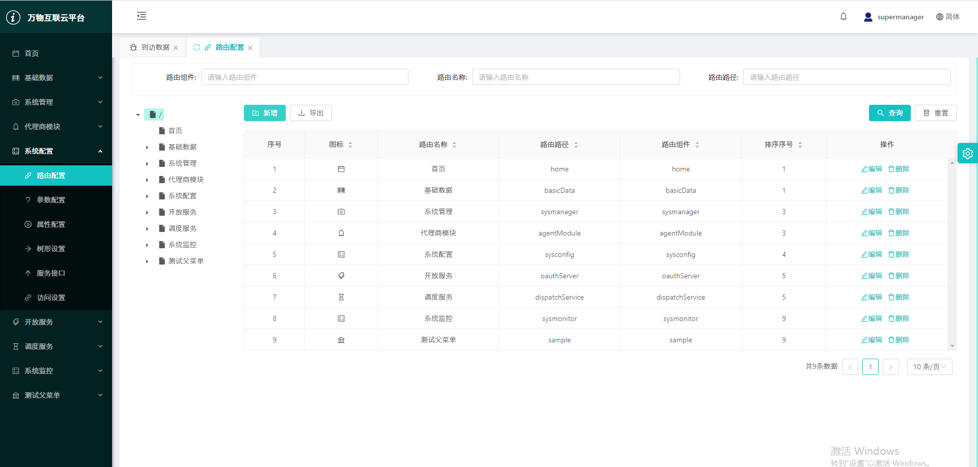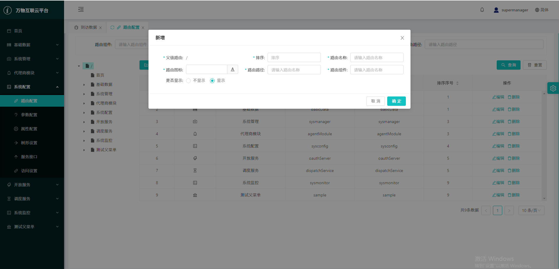 二、点击左侧树,给选中的添加子级(路由路径和路由组件需保持一致),填写完提交即可
